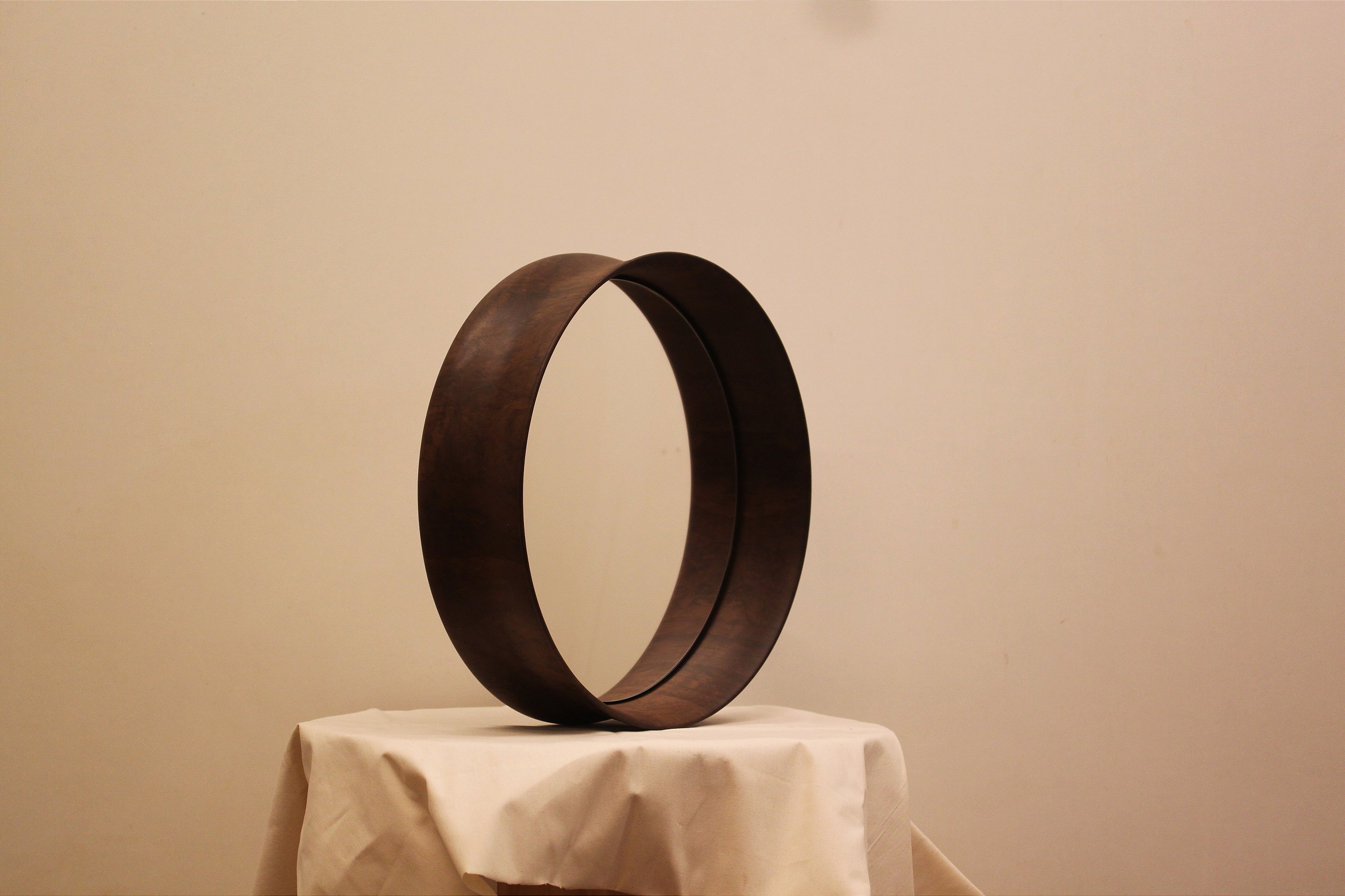 Espelho de parede redondo , produzido em madeira imbúia maciça.
