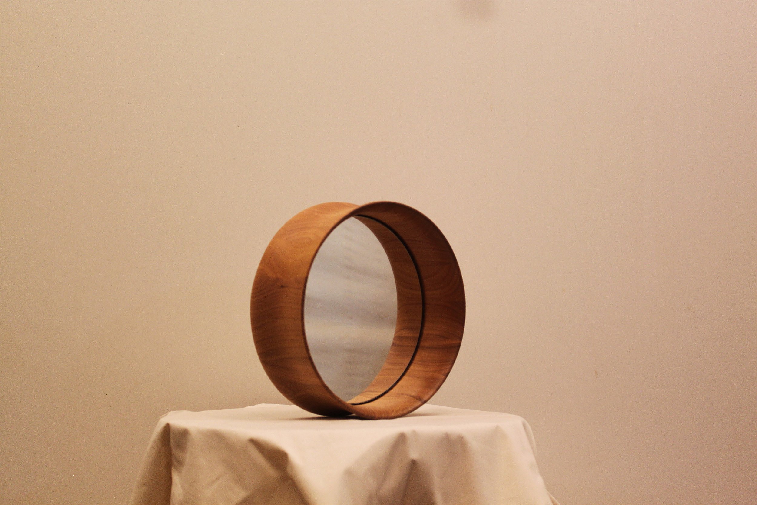 Espelho de parede redondo , produzido em madeira peroba do campo maciça.